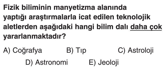 9. sınıf Fiziğin Uygulama Alanları Test 1