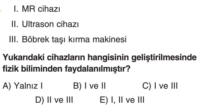 9. sınıf Fiziğin Uygulama Alanları Test 1