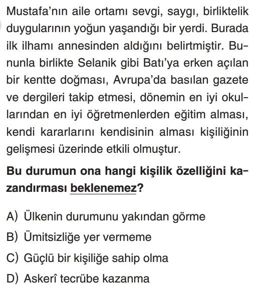 8. sınıf Bir Kahraman Doğuyor Test 3