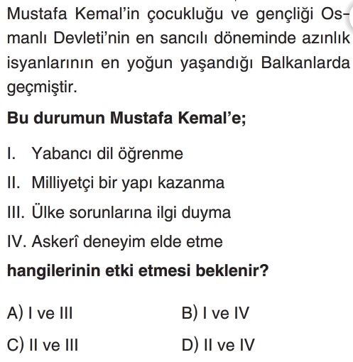 8. sınıf Bir Kahraman Doğuyor Test 4
