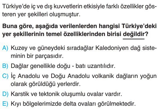 📝10. sınıf Türkiye Yer Şekillerinin Genel Özellikleri Test 3