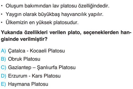 📝10. sınıf Türkiye Yer Şekillerinin Genel Özellikleri Test 3