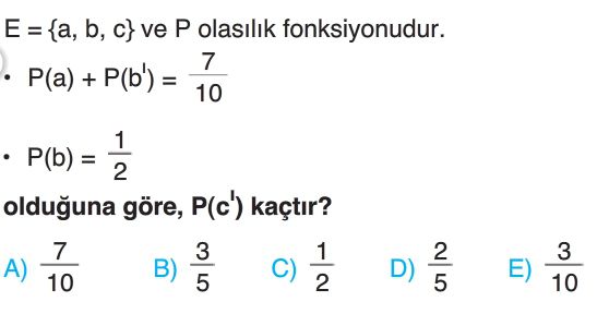 📝10. Sınıf Basit Olayların Olasılıkları Test 3