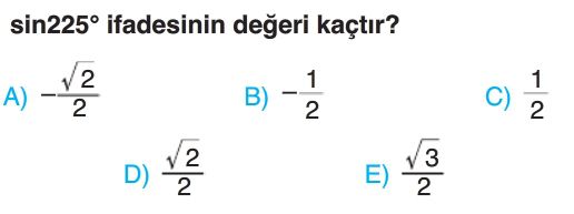 11. Sınıf Trigonometrik Fonksiyonlarda İndirgeme Test 1
