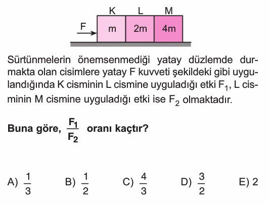 11. Sınıf Newton'un Hareket Yasaları Test 3