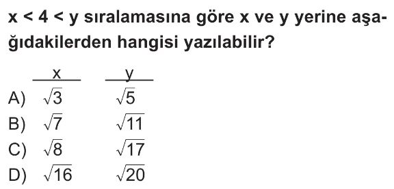📝8. Sınıf Tam Kare Olmayan Kareköklü İfadenin Hangi İki Doğal Sayı Arasında Olduğunu Belirleme Test 3
