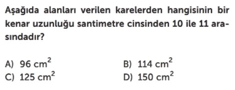 8. Sınıf Tam Kare Olmayan Kareköklü İfadenin Hangi İki Doğal Sayı Arasında Olduğunu Belirleme Test 2