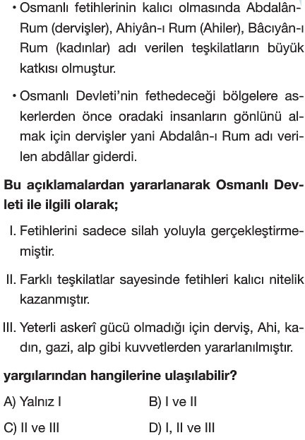 7. sınıf Osmanlı Devleti'nin Fetih Siyeseti Test 2