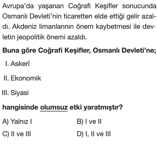 7. sınıf Avrupa'da Yaşanan Gelişmelerin Osmanlı Devleti'ne Etkisi Test 3
