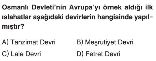 7. sınıf Osmanlı Devleti'nde Islahat Hareketleri Test 2