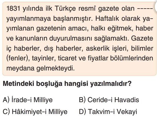 7. sınıf Osmanlı Devleti'nde Islahat Hareketleri Test 3