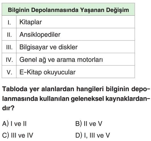 7. sınıf Bilginin Korunması ve Yaygınlaştırılması Test 3