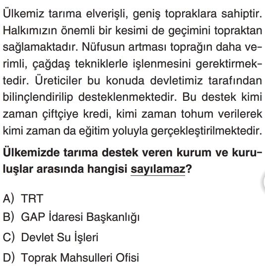 7. sınıf Toprağın Gücü Test 3
