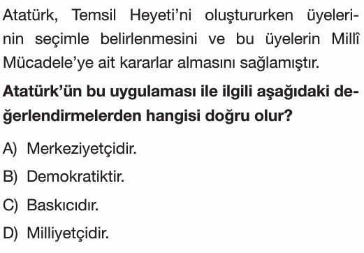 7. sınıf Atatürk'ün Demokrasiye Katıkısı Test 2