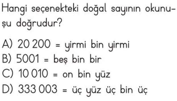 📝4. Sınıf 4, 5 ve 6 Basamaklı Doğal Sayılar Test 3