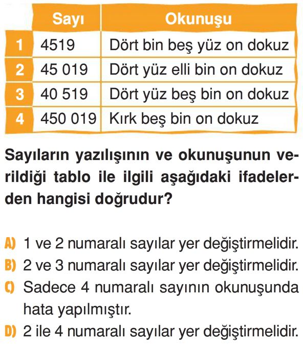 📝4. Sınıf 4, 5 ve 6 Basamaklı Doğal Sayılar Test 4