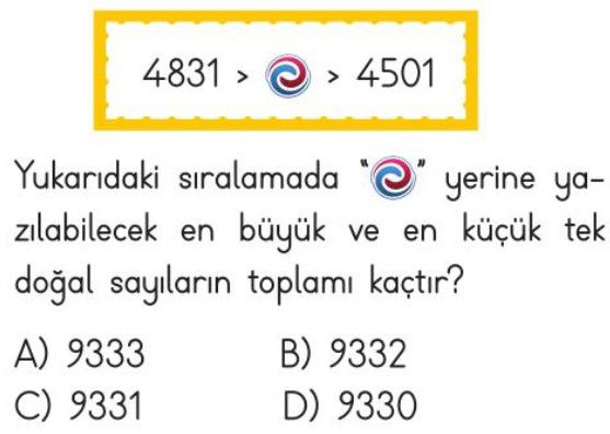 4. Sınıf Doğal Sayıları Sıralama Test 1