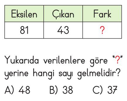2. Sınıf Çıkarma İşlemi Test 3