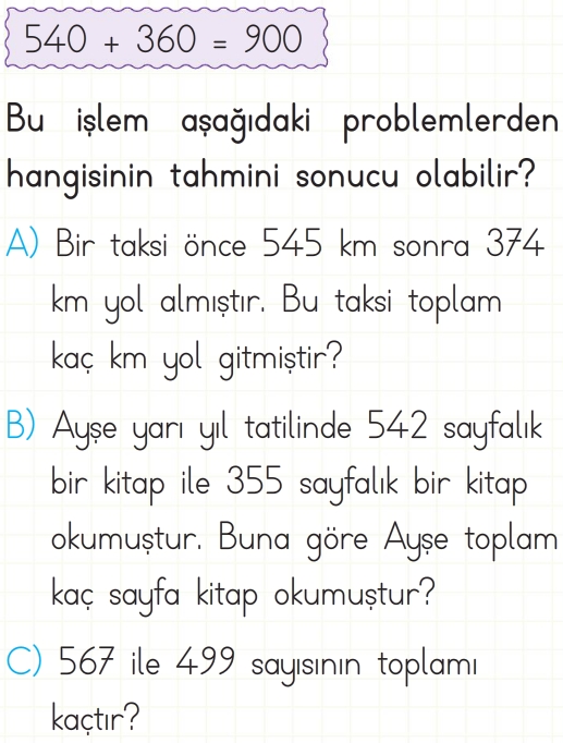 3. Sınıf Toplama ve Çıkarma Problemleri Test 1