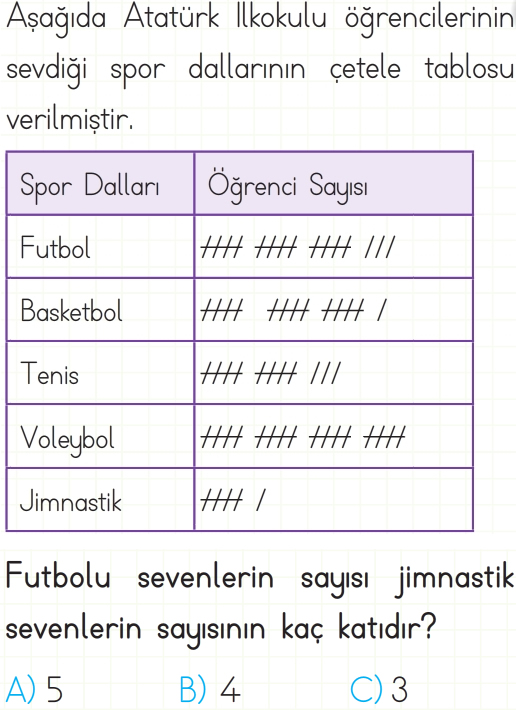 📝3. Sınıf Veri Toplama ve Değerlendirme Test 5