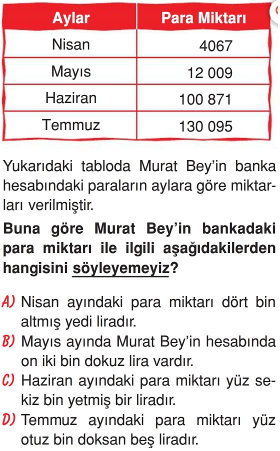 📝4. Sınıf 4, 5 ve 6 Basamaklı Doğal Sayılar Test 7