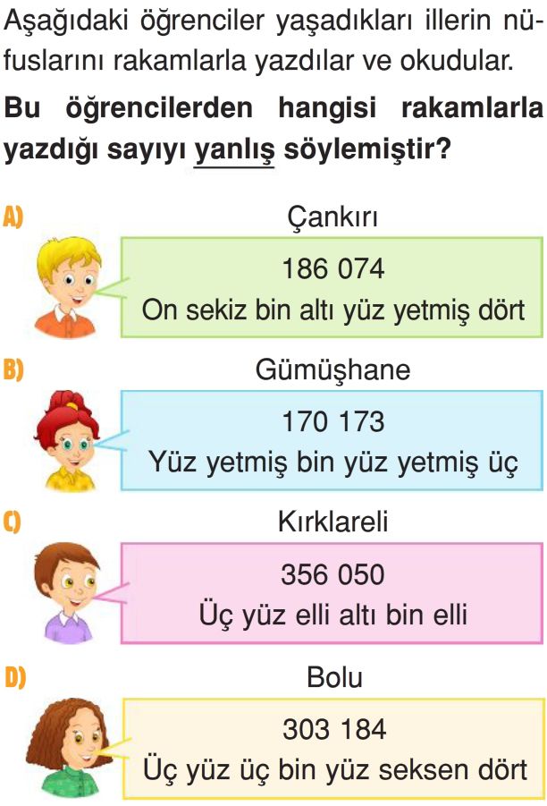📝4. Sınıf 4, 5 ve 6 Basamaklı Doğal Sayılar Test 4