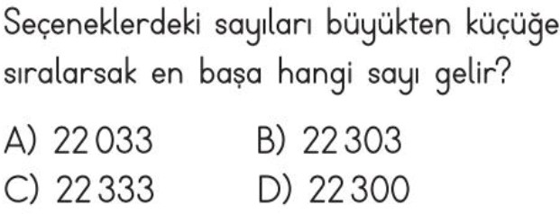 4. Sınıf Doğal Sayıları Sıralama Test 1