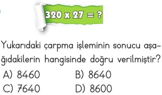 4. Sınıf Çarpma İşlemi Test 3