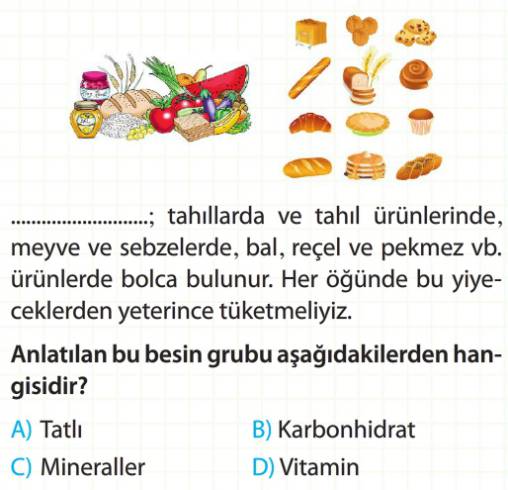 📝4. Sınıf Besinler ve Özellikleri Test 5