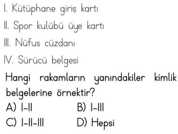 4. Sınıf Herkesin Bir Kimliği Var Test 3