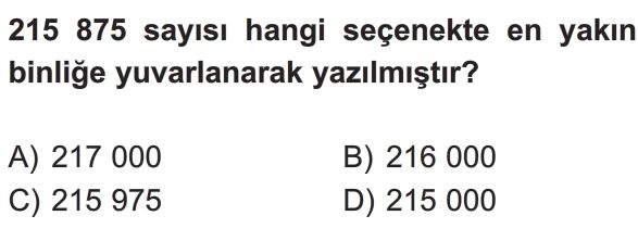 5. Sınıf Doğal Sayılarda Toplama ve Çıkarma İşlemi Test 5