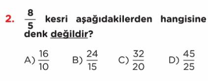 5. Sınıf Denk Kesirler ve Sıralama Test 1