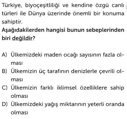 5. Sınıf Biyoçeşitlilik Test 3