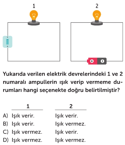 📝5. Sınıf Devre Elemanlarının Sembollerle Gösterimi ve Devre Şemaları Test 7