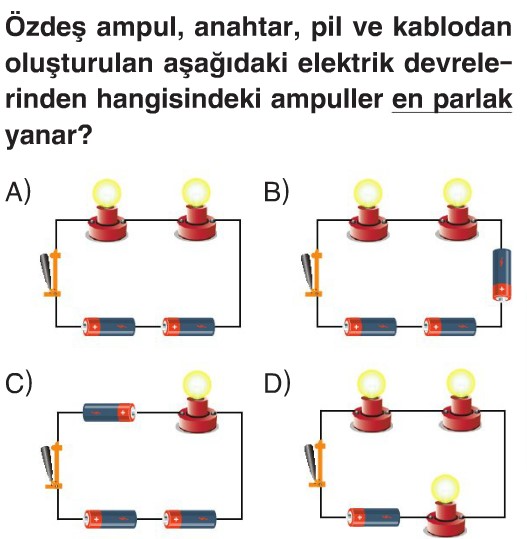 5. Sınıf Basit Bir Elektrik Devresinde Ampul Parlaklığını Etkileyen Değişkenler Test 7