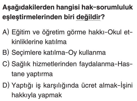 5. Sınıf Haklarımı ve Sorumluluklarımı Biliyorum Test 2