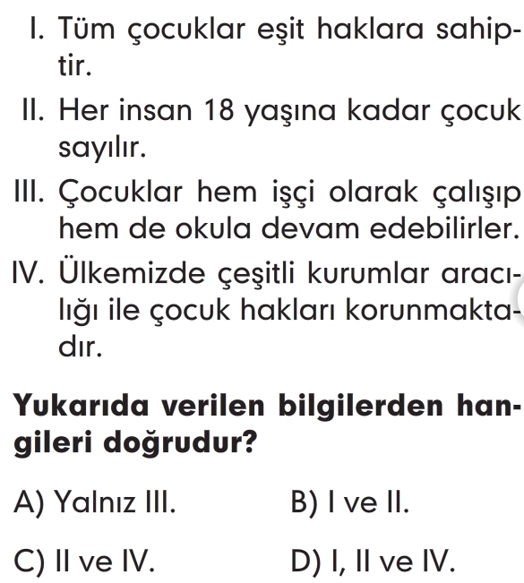 5. Sınıf Çocuk Hakları Heryerde Test 4