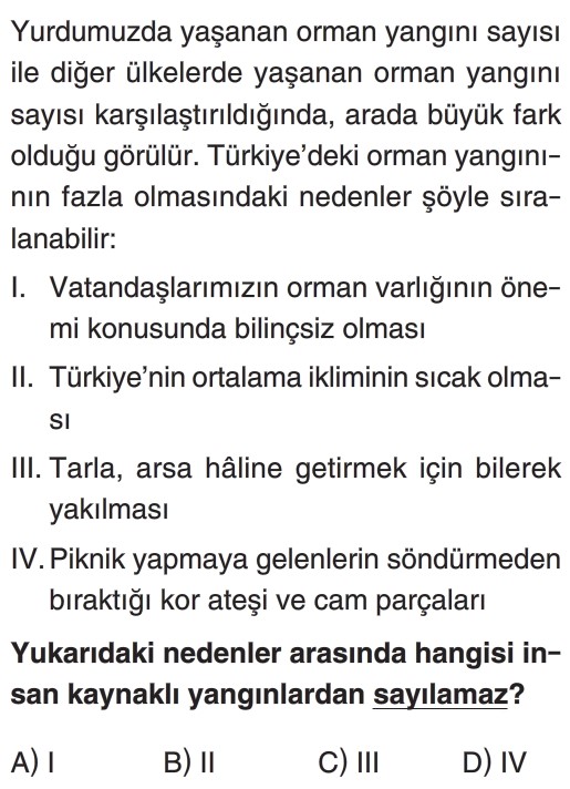 5. Sınıf Afetlerin İnsan Üzerindeki Etkileri Test 2