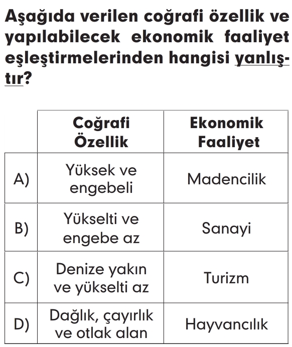 📝5. Sınıf Yaşadığım Yerdeki Ekonomik Faaliyetler Test 3