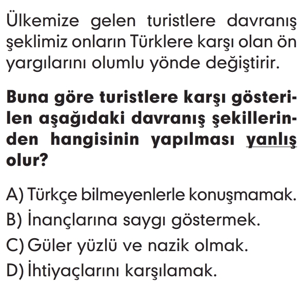 5. Sınıf Turizm Ön Yargıları Değiştiriyor Test 2