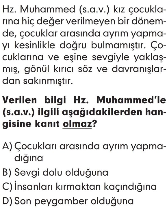 5. Sınıf Bir Eş, Baba ve Dede Olarak Hz. Muhammed (s.a.v.) Test 3