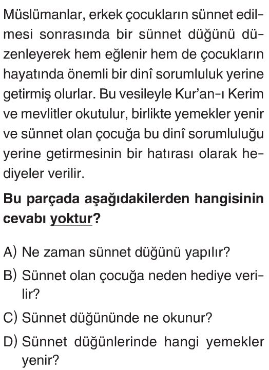 5. Sınıf Örf ve Âdetlerimizde Dinin İzleri Test 3