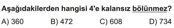 📝6. Sınıf Bölünebilme Kuralları Test 4