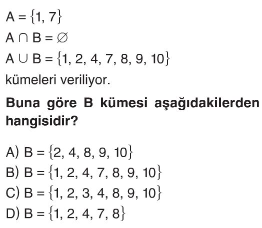 6. Sınıf Kümeler Test 3