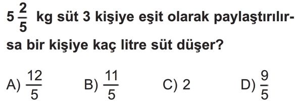 6. Sınıf Kesirlerle Bölme İşlemi Test 3