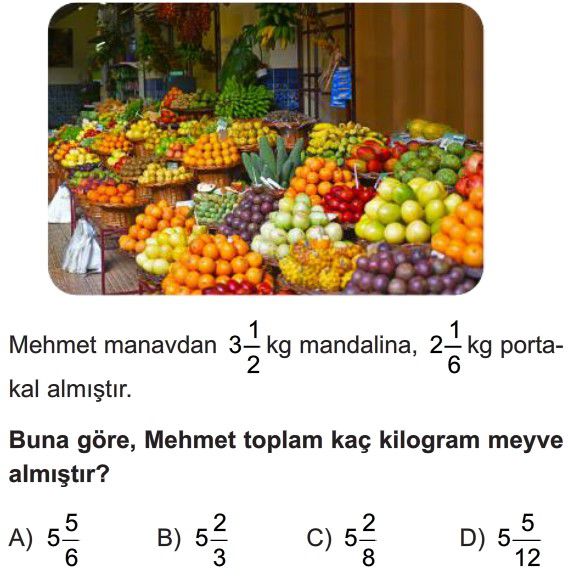 📝6. Sınıf Kesirlerle Problemler Test 5