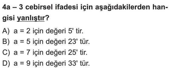 📝6. Sınıf Cebirsel İfadeler Test 4