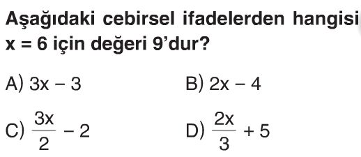 📝6. Sınıf Cebirsel İfadeler Test 3