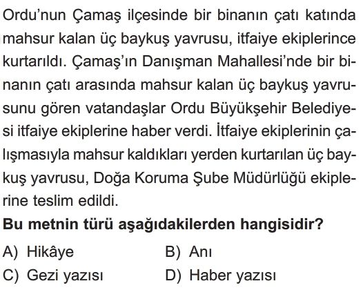 6. Sınıf Metin Türleri ve Söz Sanatları Test 3