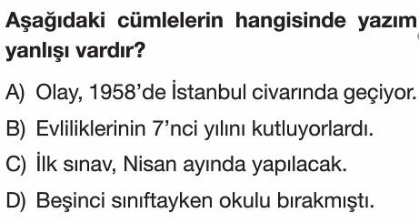 6. Sınıf Yazım Kuralları Test 7